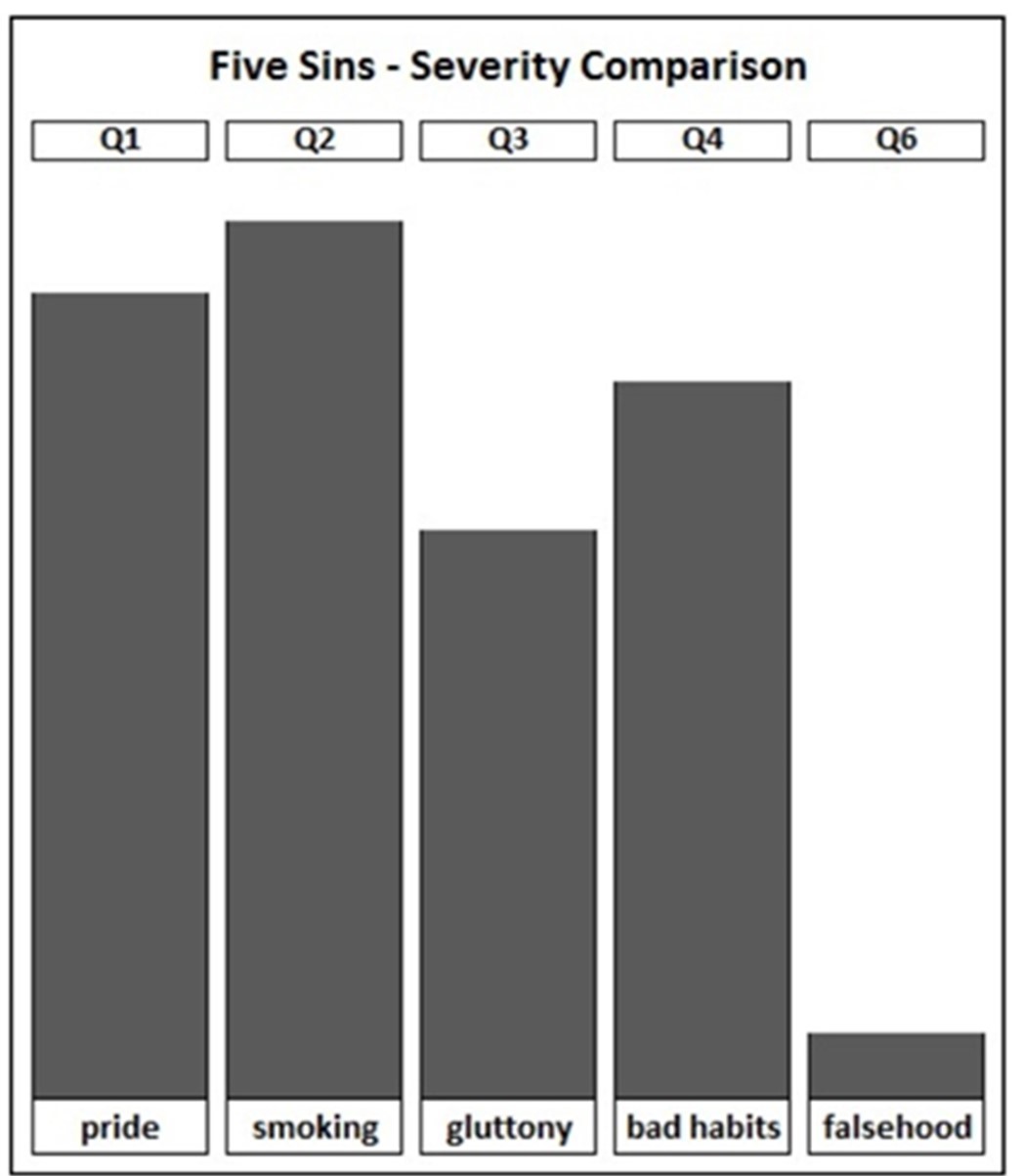 Før internett og de sosiale medienes dager gikk det en debatt om synd, hvilke som var de alvorligste, hvor argumentasjonen foregikk på epost. En som fulgte med debatten lagde en graf for å vise hvordan noen representative kristenledere graderte synder som stolthet, røyking, fråtsing, dårlige vaner og løgnaktighet.