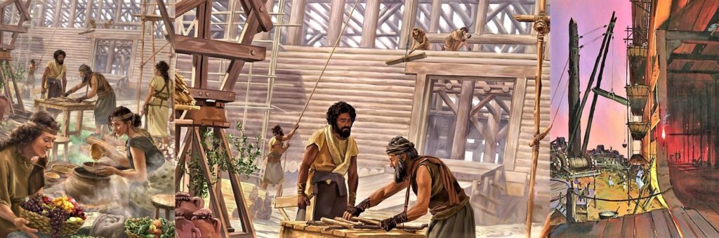 “… den gang da Guds langmodighet ventet i Noahs dager, da arken ble bygget, i hvilken noen få, åtte sjeler, ble frelst ved vann, det som også nå frelser oss i sitt motbilde, dåpen, som ikke er avleggelse av kjødets urenhet, men en god samvittighets pakt med Gud ved Jesu Kristi oppstandelse …” 1Pet 3:20-21